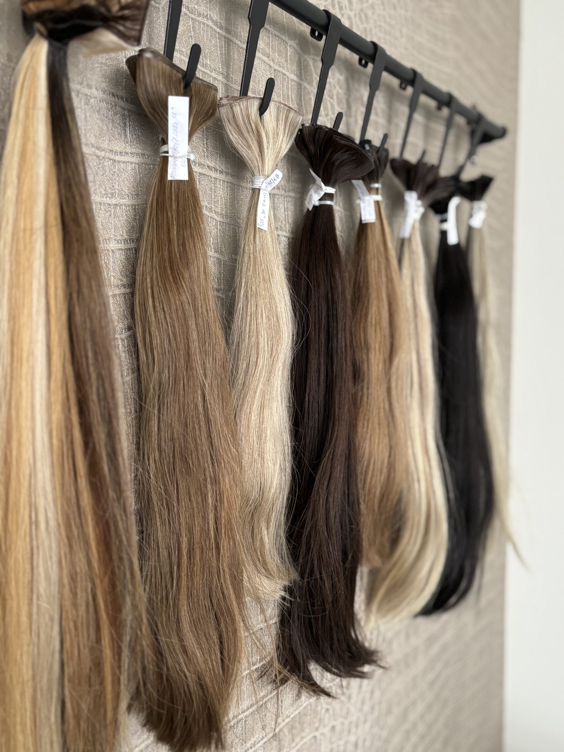 Machine Wefts, Handtied Wefts, Genius Wefts, Flat Wefts, (Invisible) Tape-ins, Nanorings, Microrings / I-tips, Keratine & Bondings, Clip-ins